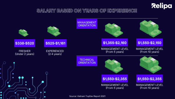 With regard to TopDev’s Vietnam IT market report 2020, Vietnam has about 400.000 qualified engineers, including back-end, front-end, full-stack, etc., and approximately 50.000 graduated IT bachelors from over 150 universities and colleges.