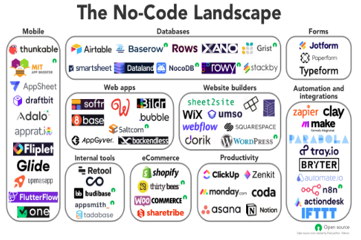 The above are just a few typical no-code/low-code tools. There are many different tools on the market.