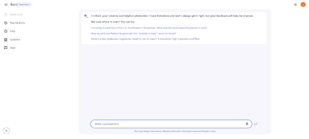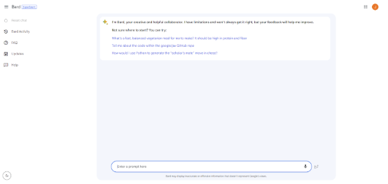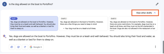 • Google Integration: Bard’s technology is designed to integrate seamlessly with Google’s ecosystem, giving users access to a wealth of information from various Google products such as Google Search and Google Scholar. These resources allow Bard to provide users with real-time, up-to-date information. Additionally, this integration leverages your search history and preferences to better understand your needs and interests, enabling a personalized experience.