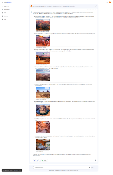 • “I’m doing the road trip to the US Southwest in November. What are the most beautiful places to visit?”