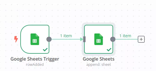 - Google Sheet Node: Performs actions such as appending new rows or updating existing data.